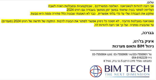 בעקבות העדכון ל-WIN11 ומבול התקלות בתאימות מול Revit שבעקבותיו, עושה רושם שטטיאנה שלכם הצליחה לפצח את המקור/ות לתקלות ולייצב בחזרה את תחנות העבודה למצב מבצעי.
